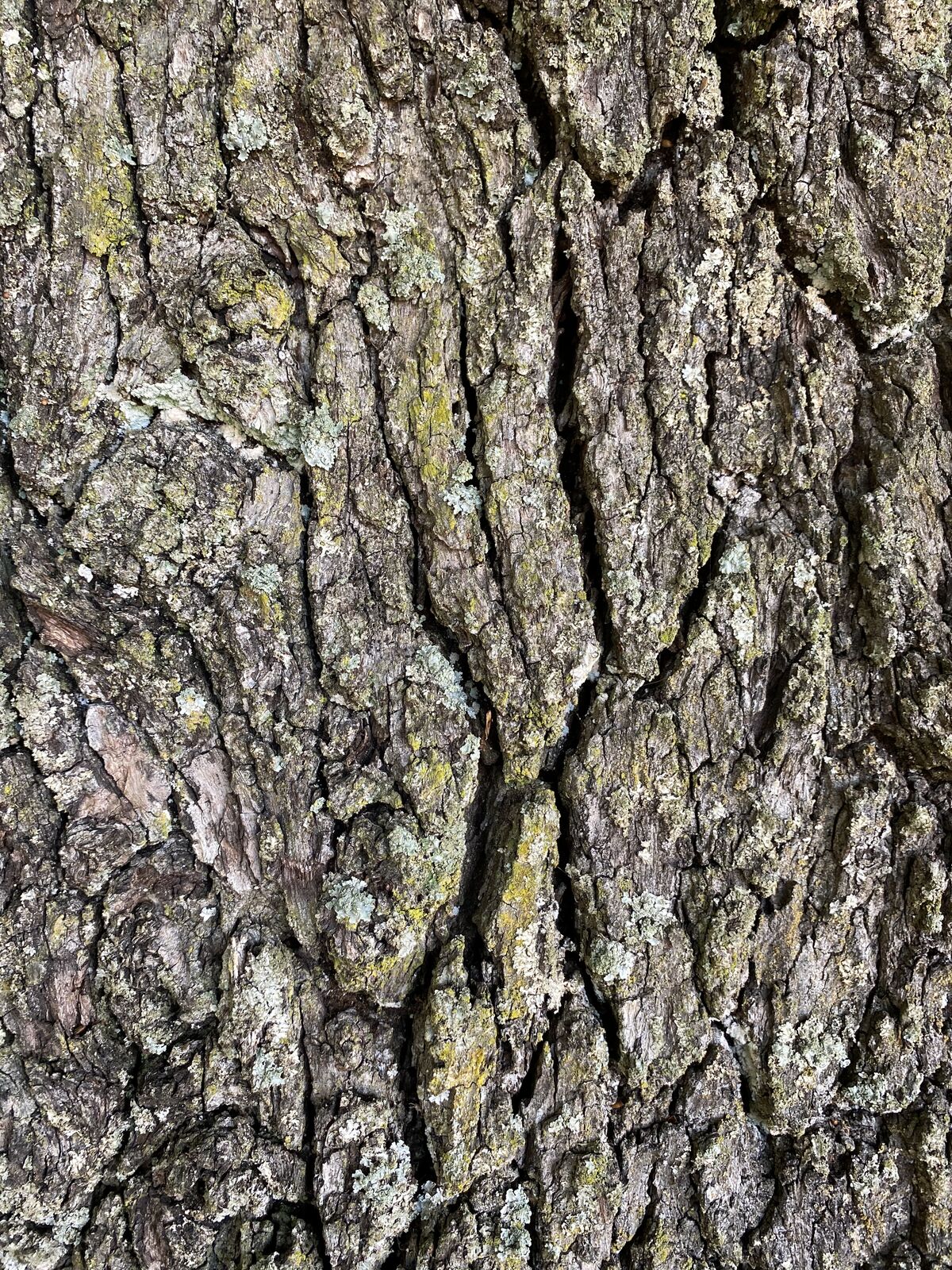 Rinde: Graubraun bis dunkelbraun, dick und tief gefurcht