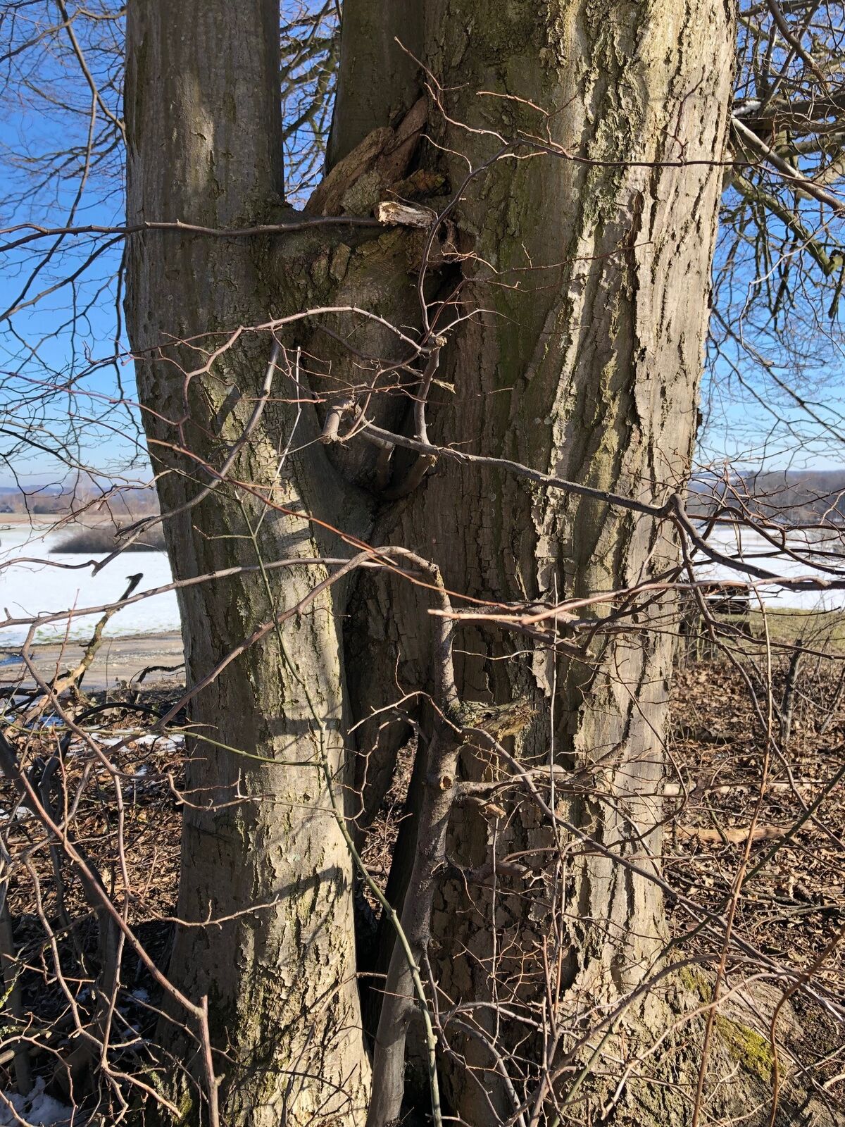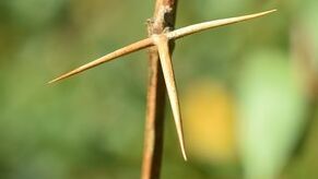 Rinde: Gelbbraun bis grau mit teils dreiteiligen Dornen
