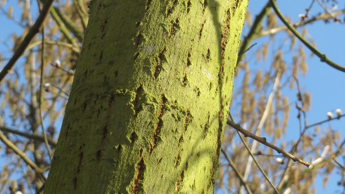 Rinde: Braun bis grau bis grünlichgelb, glänzend, glatt