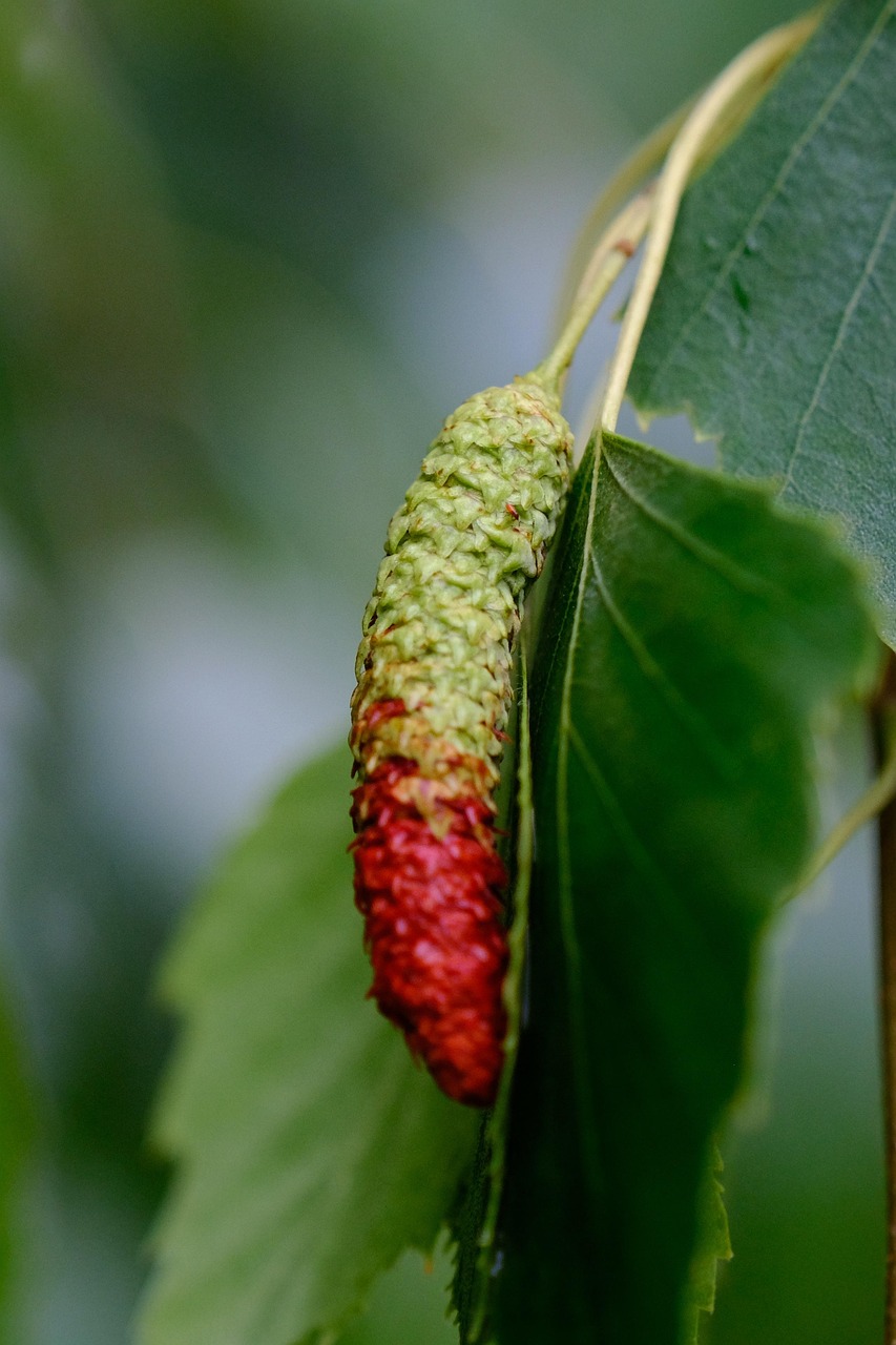 Blüte/Früchte: Windbestäuber, männliche Kätzchen bilden sehr kleine Pollen in Massen, allergieauslösend, die weiblichen Kätzchen reifen ab August/ September zu kleinen Nüsschen heran
