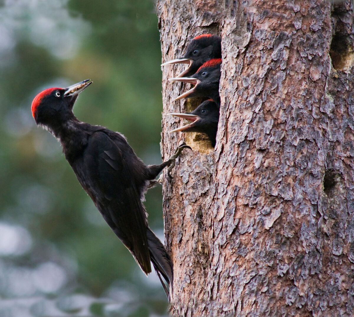 Die vom Schwarzspecht geschaffenen Höhlen werden nach seiner Nutzung von über 50 anderen Tierarten übernommen, darunter Hohltauben, Raufußkäuze, Fledermäuse und sogar Waschbären. Indem er die Baumrinde aufhackt, hilft er zudem, Schadinsekten in Schach zu halten.