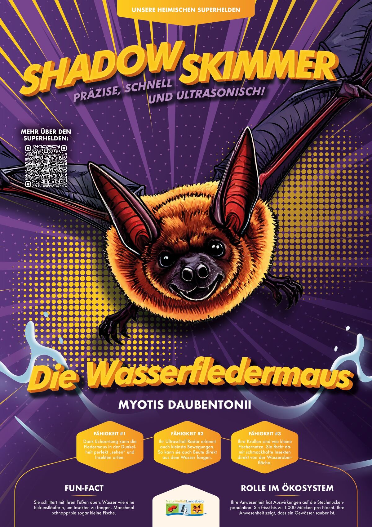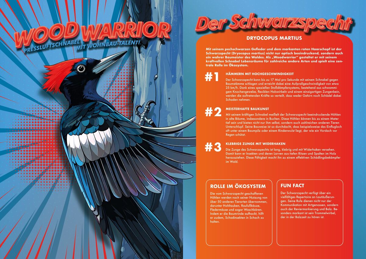 Deshalb gibt es jetzt eine besondere Möglichkeit, sie kennenzulernen: Auf großformatigen, anschaulichen Postern werden sie als echte Superhelden präsentiert – mit all ihren einzigartigen Kräften. Die Poster sollen vor allem Kinder dazu einladen, diese faszinierenden Tiere selbst in unserer Natur zu entdecken und zu staunen, was sie alles können.